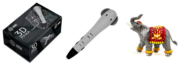В каждую упаковку входят: руководство пользователя, 3D-ручка, стартовый набор пластика, провод микро-USB.