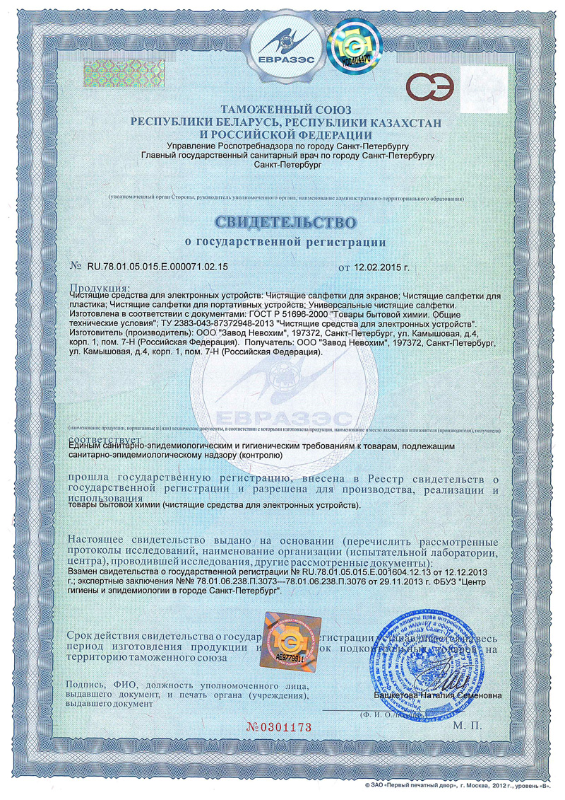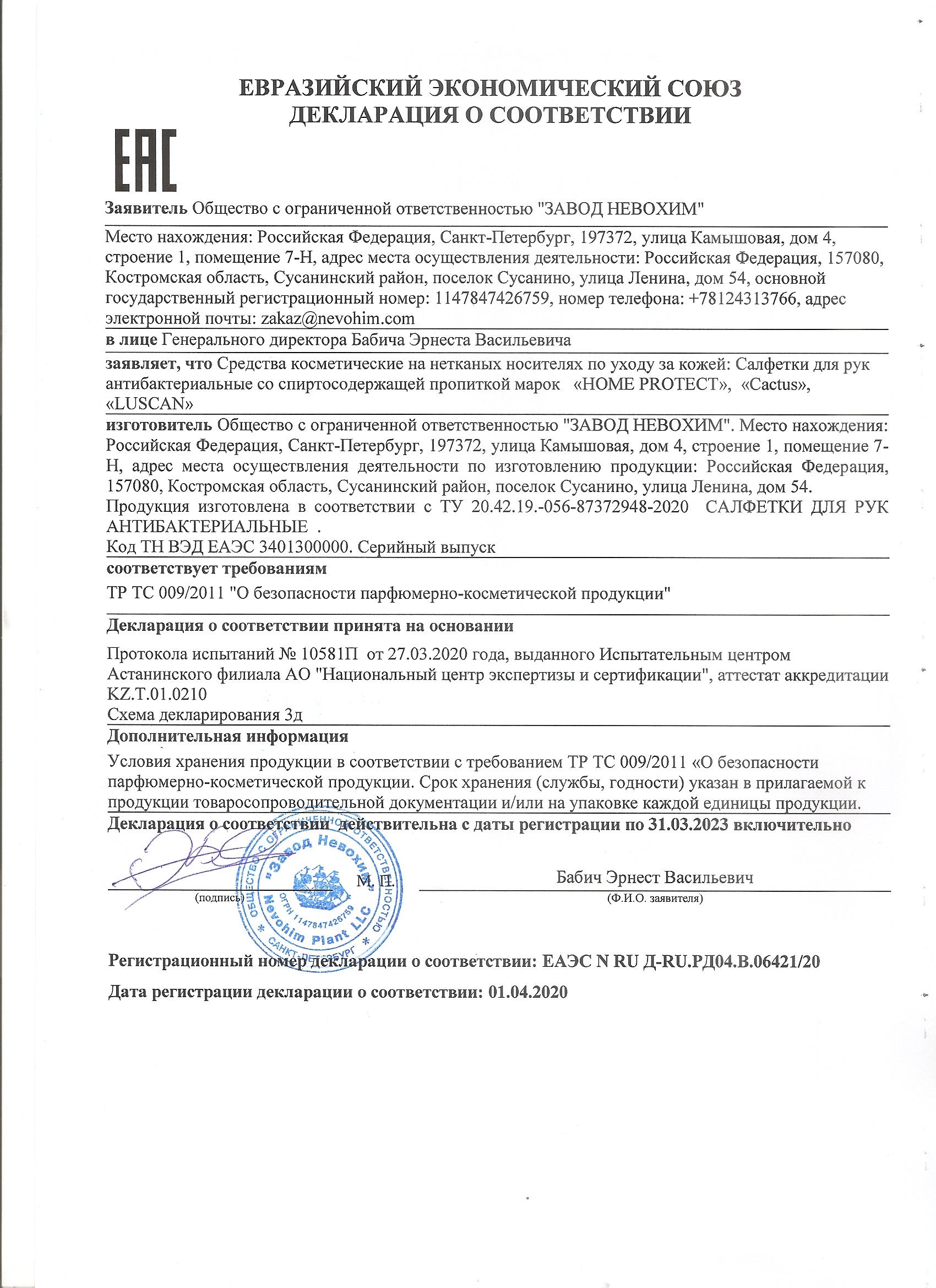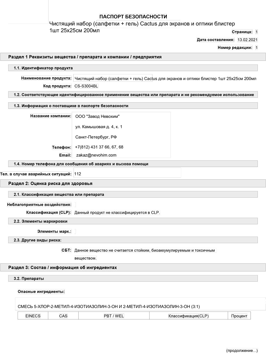 Свидетельство о Свидетельство о Салфетки Cactus Чистящий набор