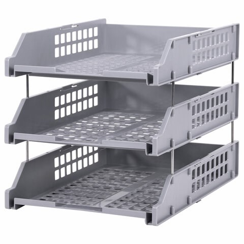 Лотки горизонтальные для бумаг, КОМПЛЕКТ 3 шт., 334х255х271 мм, серый, BRAUBERG GRAND OFFICE