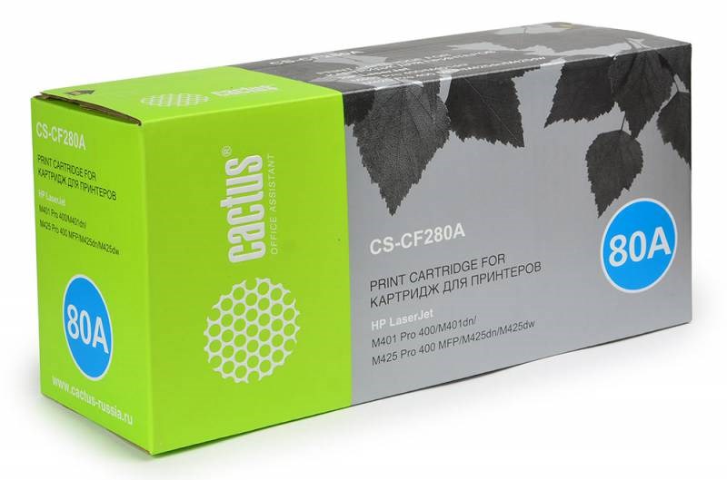 Лазерный картридж Cactus CS-CF280A (HP 80A) черный для HP LaserJet M401 Pro 400, M401a, M401d Pro 400, M401dn, M401dne (CF399A), M401dw, M401n, M425 Pro 400 MFP, M425dn, M425dw (2'700 стр.)