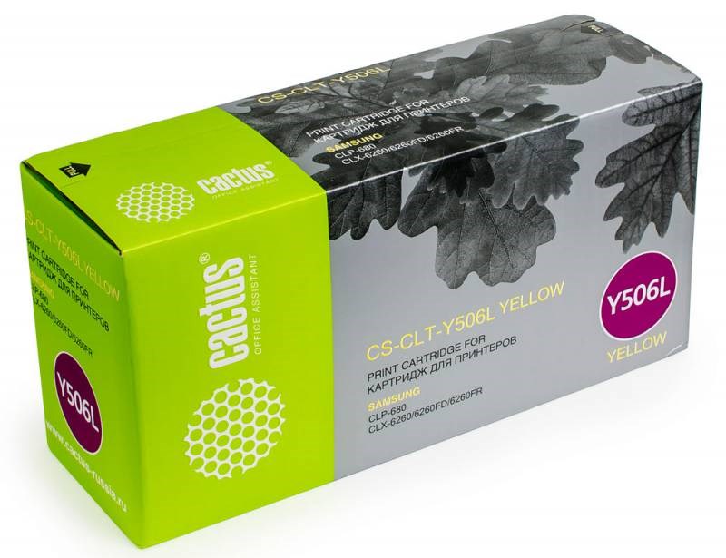 Лазерный картридж Cactus CS-CLT-Y506L (CLT-Y506L) желтый увеличенной емкости для Samsung CLP 680, 680DW, 680ND; CLX 6260, 6260FD, 6260FR, 6260FW, 6260ND (3'500 стр.)