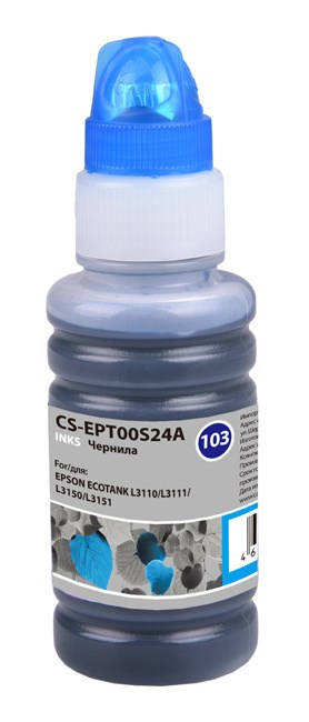 Чернила Cactus CS-EPT00S24A голубой для Epson Ecotank L1110, L3100, L3101, L3110, L3150, L3151 (70 мл)