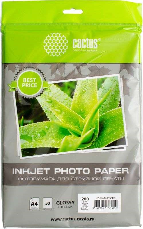 Фотобумага Cactus CS-GA420050ED A4, 200г/м2, 50л, белая глянцевая для струйной печати