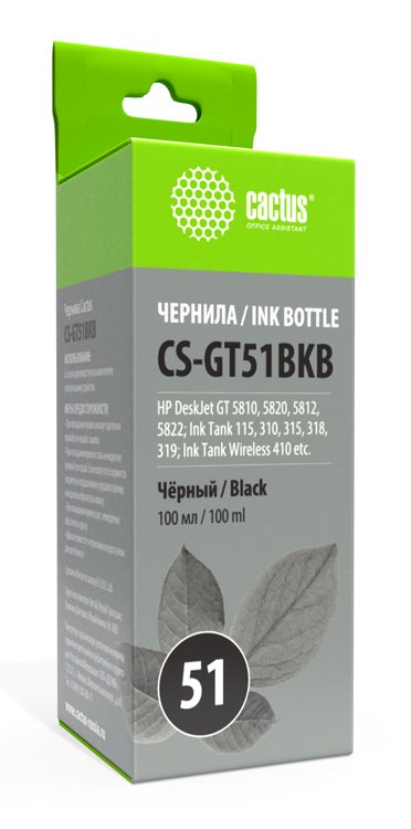 Чернила Cactus CS-GT51BKB черный для DeskJet GT 5810, 5820, 5812, 5822 (100 мл)