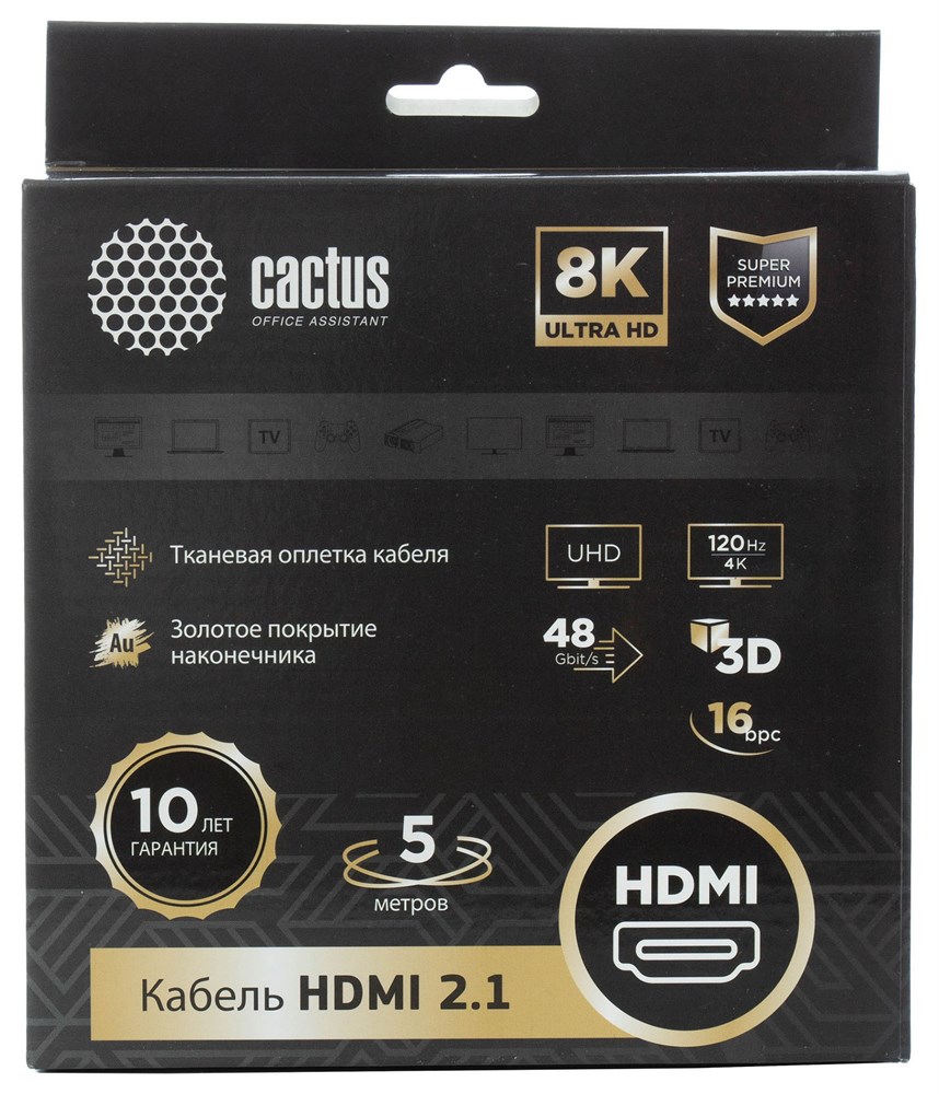 Кабель аудио-видео Cactus CS-HDMI.2.1-5 HDMI (m)/HDMI (m) 5м. позолоченные контакты, черный