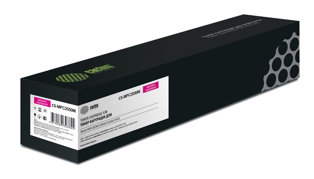 Совместимый лазерный картридж Cactus CS-MPC2550M предоставит Вам чёткие и насыщенные напечатанные документы. При печати отсутствуют видимые отличия от оригинального картриджа. В картриджах используются только качественные материалы, которые не навредят вашему печатному устройству. Ресурс полностью соответствует оригинальному. Картриджи Cactus – оптимальное решение для Вас и для вашего оборудования.