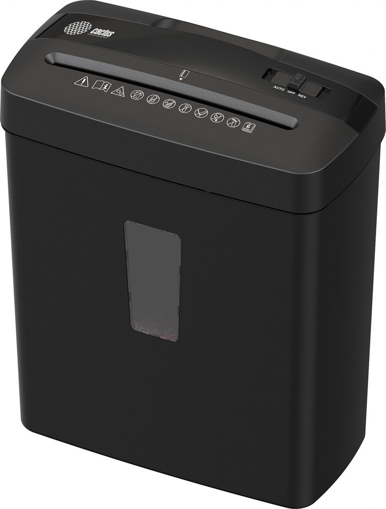 Шредер Cactus CS-SH-A3 черный (секр.P-4) перекрестный 6лист. 13лтр. скобы пл.карты