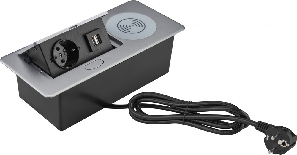 Выдвижная встраиваемая розетка CS-SOCKET-USBA-WLESS – идеальное решение для обустройства рабочего места и грамотной организации пространства. Встраиваемая розетка CS-SOCKET-USBA-WLESS оснащена не только привычным разъемом USB-A, но и индуктивным зарядным устройством, что позволяет заряжать несколько устройств одновременно. Это особенно удобно, если вы длительное время работаете за письменным столом, и часто пользуетесь телефоном и иными гаджетами, требующими периодической зарядки. Подходит для всех типов офисов, включая домашний офис, помогая поддерживать привычный ритм рабочего дня.
