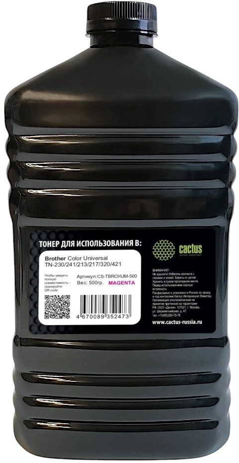 Тонер Cactus CS-TBRCHUM-500 пурпурный флакон для принтера Brother Color Universal TN-230, 241, 213, 217, 320, 421 (500 гр.)