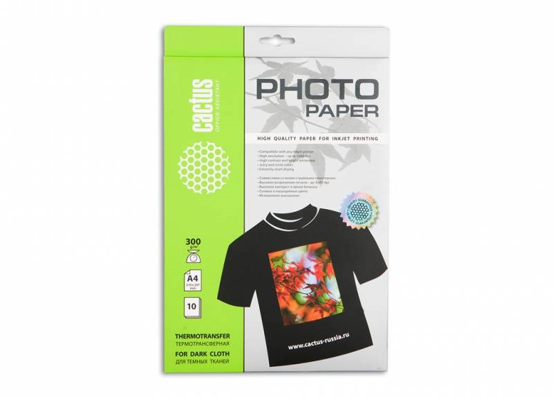 Термотрансфер Cactus CS-TD30010 A4, 300г/м2, 10л. для темных тканей