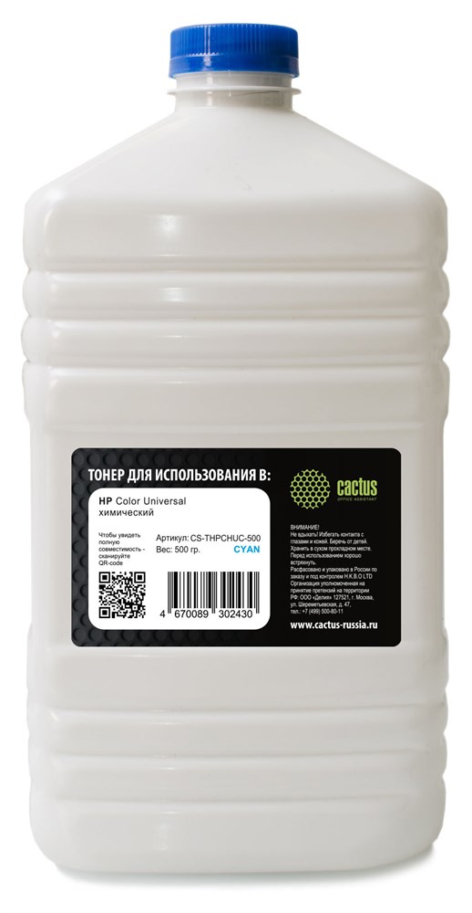 Тонер Cactus CS-THPCHUC-500 голубой для принтера HP Color Universal (флакон 500 гр.)