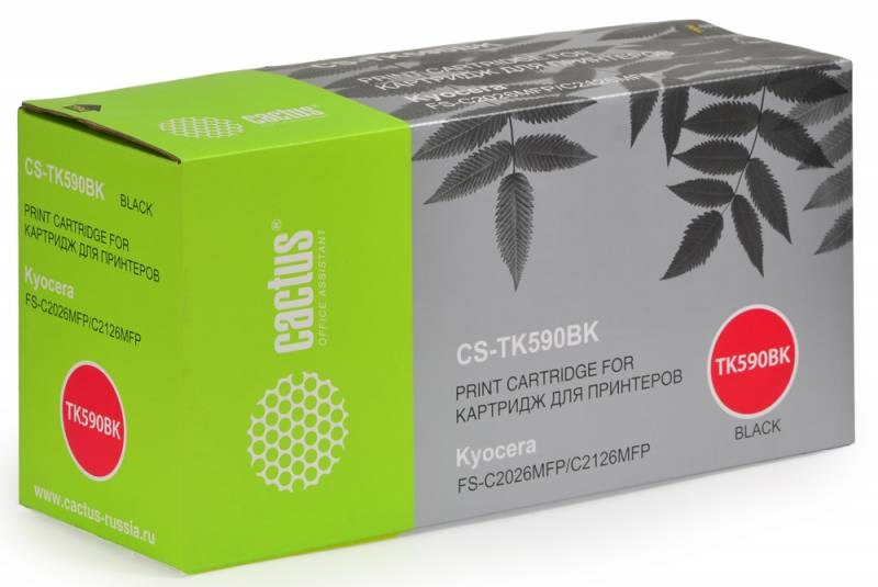 Лазерный картридж Cactus CS-TK590BK (TK-590K) черный для принтеров Kyocera Mita Ecosys M6026, M6026cdn, M6026cidn, M6526, M6526cdn, M6526cidn, P6026cdn, FS C2026, FS C2126, FS C2526 MFP, FS C2626 MFP, FS C5250 (7'000 стр.)