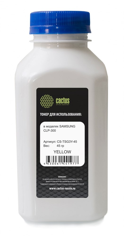 Тонер Cactus CS-TSG3Y-45 подходит для заправки картриджа Samsung CLP-Y300A и его аналога Cactus CS-CLP-Y300A.