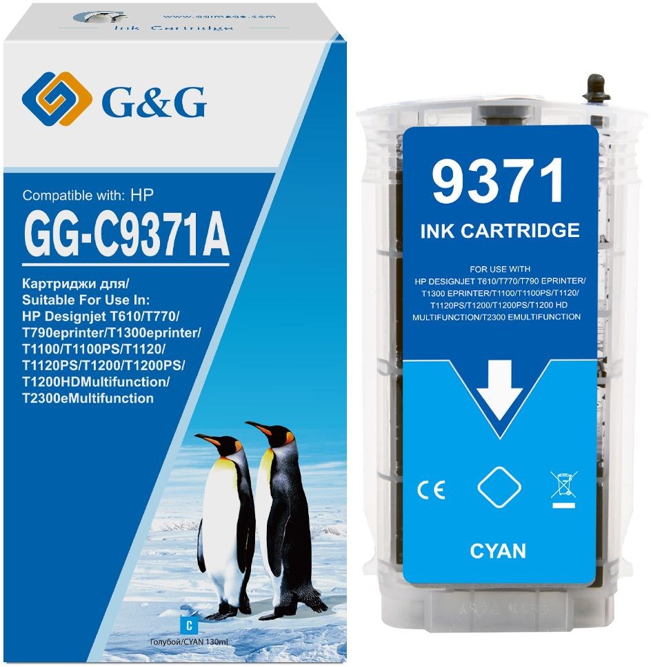 Струйный картридж G&G GG-C9371A голубой для HP Designjet T610, T770, T790eprinter, T1300eprinter, T1100 (130 мл)