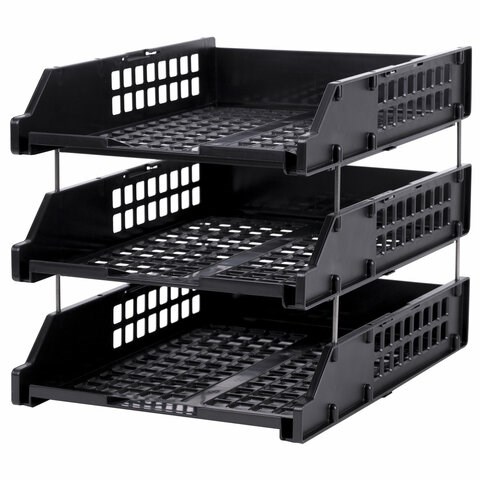 Лотки горизонтальные для бумаг Brauberg Grand Office, комплект 3 шт., 334х255х271 мм, черный