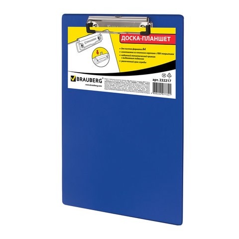 Доска-планшет BRAUBERG "NUMBER ONE" используется для работы со счетами, накладными и другими документами. Незаменима при работе на складе, в магазине, при участии в конференциях, выставках и других публичных выступлениях.