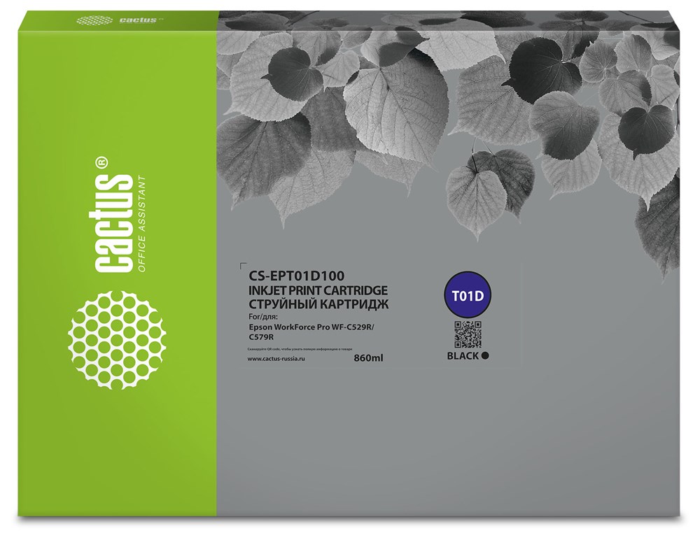 Струйный картридж Cactus CS-EPT01D100 (T01D1) черный для Epson WorkForce Pro WF-C529R, C529RDTW, C529RDTW EPP (860 мл)