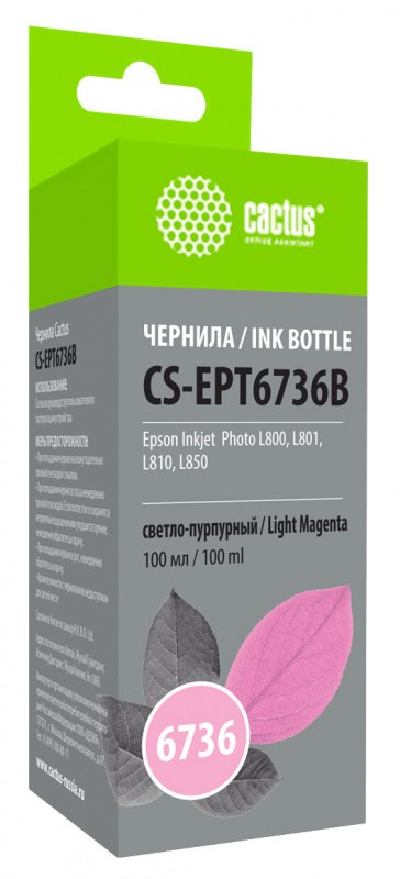 Чернила Cactus CS-EPT6736B светло-пурпурный для Epson L800, L810, L850, L1800 (100 мл)