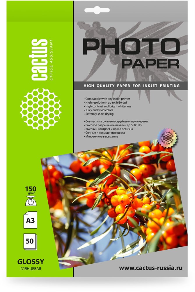 Фотобумага Cactus CS-GA315050 A3, 150г/м2, 50л, белая глянцевая для струйной печати