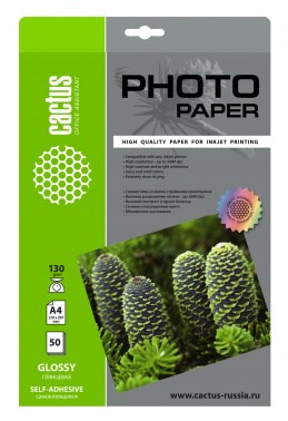 Фотобумага Cactus CS-GSA413050 A4, 130г/м2, 50 листов, глянцевая самоклей. для струйной печати