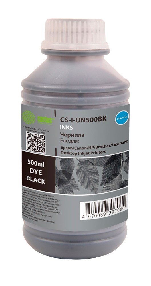 Чернила Cactus CS-I-Un500BK черный для HP, Lexmark, Canon, Epson, Brother (500 мл.)