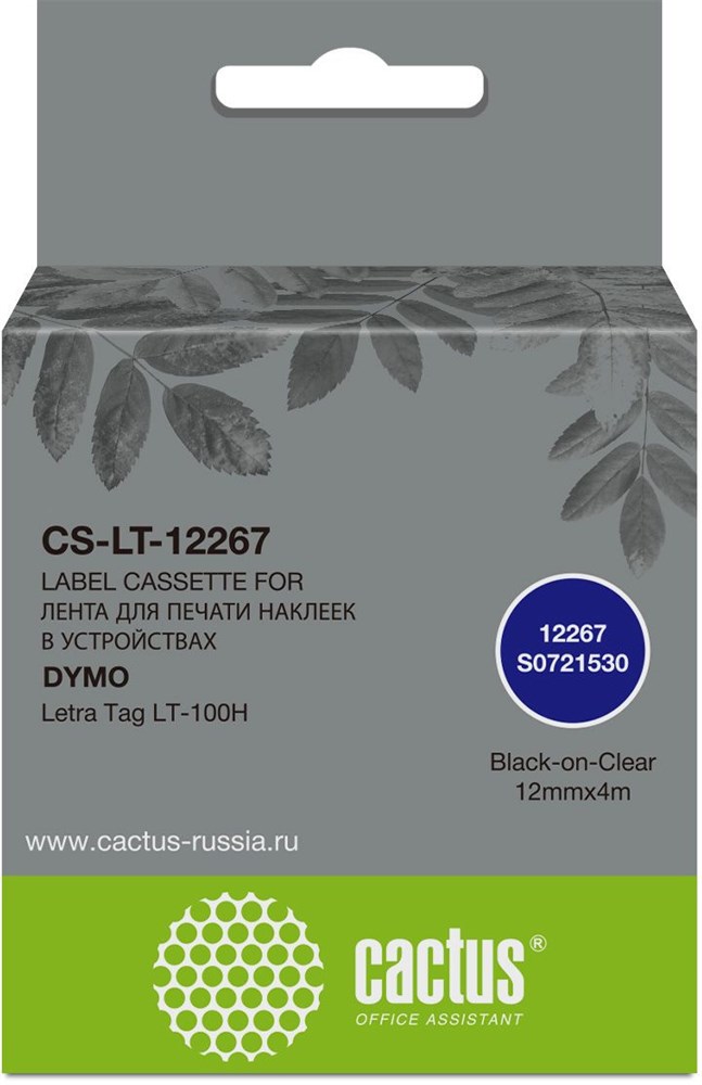 Картридж ленточный Cactus CS-LT-12267 (12267) черный/прозрачный для Dymo Letra Tag LT-100H
