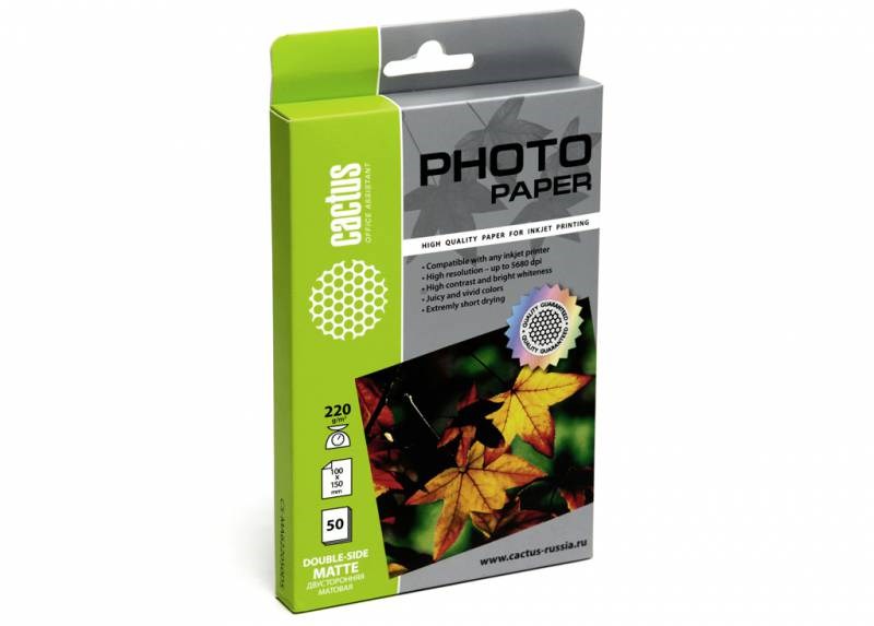 Фотобумага Cactus CS-MA622050DS 10x15, 220г/м2, 50л, белая матовая для струйной печати