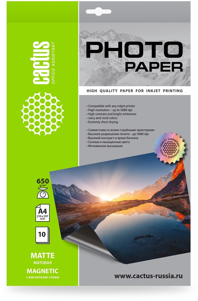 Фотобумага Cactus CS-MMA465010 A4, 650г/м2, 10л, белая матовая/магнитный слой для струйной печати