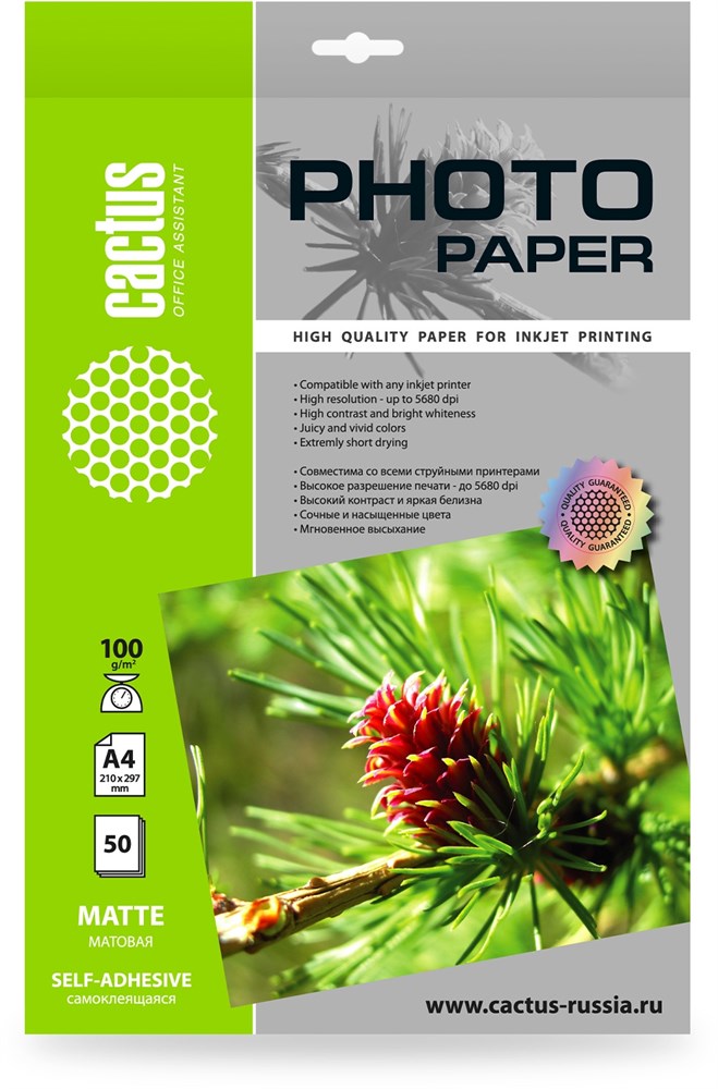 Фотобумага Cactus CS-MSA410050 A4/100г/м2/50л./белый матовое самоклей. для струйной печати