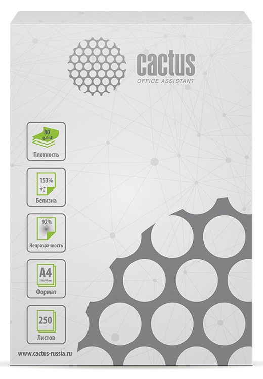 Бумага офисная Cactus CS-OPB-A480250 A4, 80г/м2, белая CIE153% (250 листов)