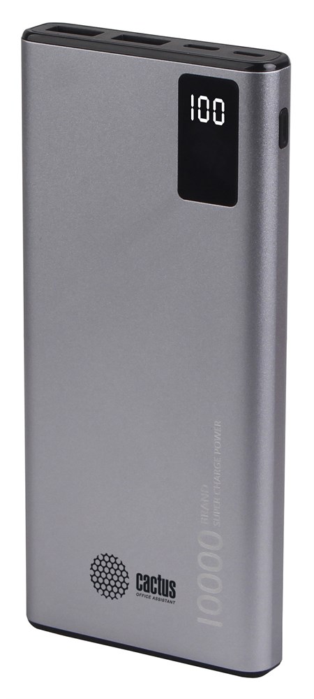 Мобильный аккумулятор Cactus CS-PBFSLT-10000 серый 3A 2xUSB (10'000 mAh)