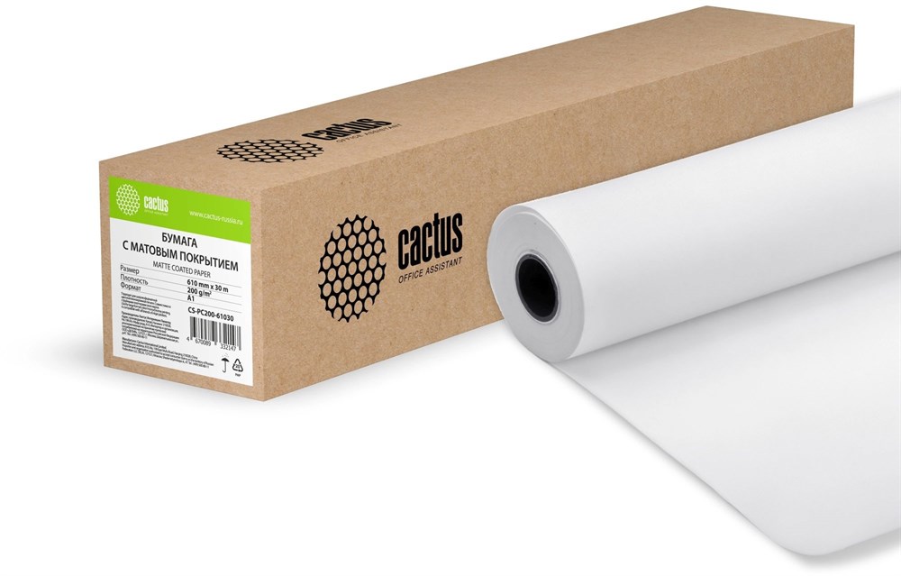 Бумага Cactus CS-PC200-61030 24"(A1) 610мм-30м, 200г/м2, белый матовое универсальная (с покрытием) втулка:50.8мм (2")