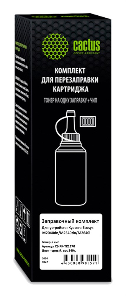 Заправочный набор Cactus CS-RK-TK1170 черный с чипом Kyocera Ecosys M2040dn, M2540dn, M2640i (флакон 240 гр.)