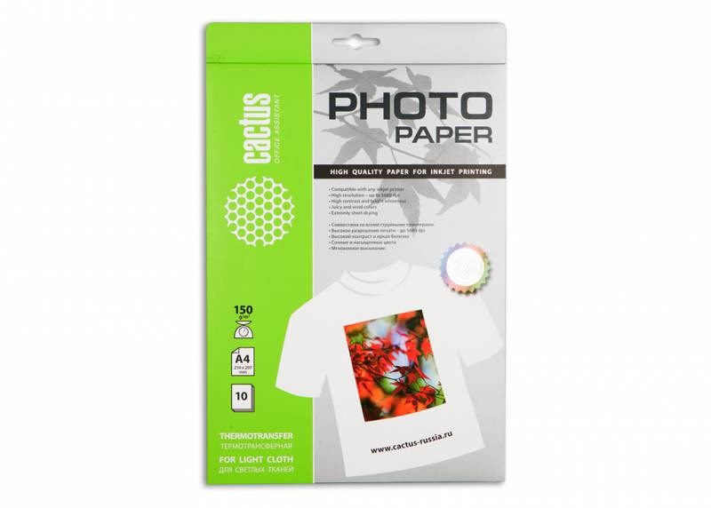 Термотрансфер Cactus CS-TD15010 A4, 150г/м2, 10л. для светлых тканей