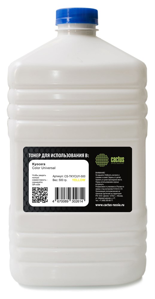 Тонер Cactus CS-TKYCUY-500 желтый для принтера Kyocera Color Universal (флакон 500 гр.)
