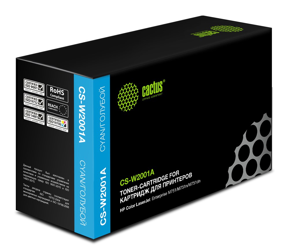 Совместимый лазерный картридж Cactus CS-W2001A предоставит Вам чёткие и насыщенные напечатанные документы. При печати отсутствуют видимые отличия от оригинального картриджа. В картриджах используются только качественные материалы, которые не навредят вашему печатному устройству. Ресурс полностью соответствует оригинальному. Картриджи Cactus – оптимальное решение для Вас и для вашего оборудования.