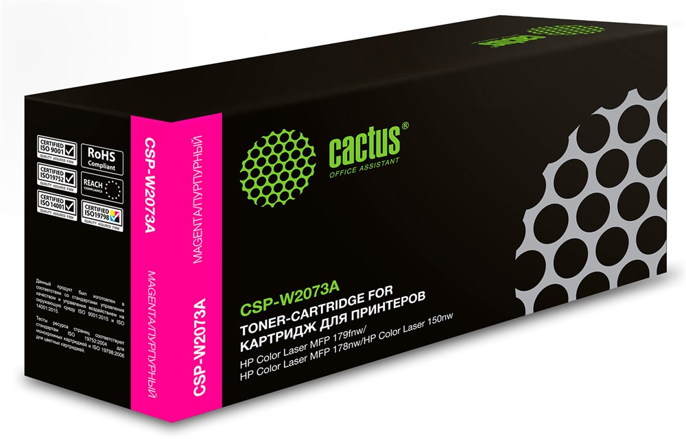 Совместимый лазерный картридж Cactus CSP-W2073A предоставит Вам чёткие и насыщенные напечатанные документы. При печати отсутствуют видимые отличия от оригинального картриджа. В картриджах используются только качественные материалы, которые не навредят вашему печатному устройству. Ресурс полностью соответствует оригинальному. Картриджи Cactus – оптимальное решение для Вас и для вашего оборудования.