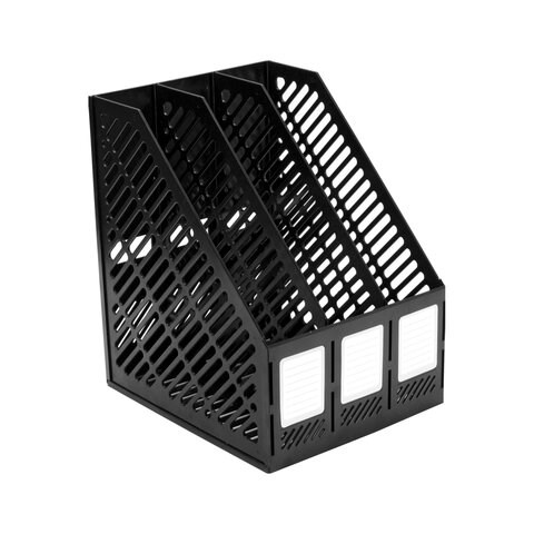 Вертикальный лоток для бумаг Brauberg "Office-Expert" для хранения документов позволит поддержать порядок на рабочем месте и сэкономит пространство на столе и в шкафу. Выполнен в черном цвете с тремя отделениями и с табличками для маркировки. Предназначен для хранения бумаг формата А4. Представляет собой устойчивую разборную конструкцию с сетчатыми поверхностями. Поставляется в разобранном виде.
