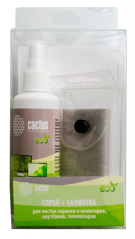 Чистящий набор Cactus CS-S3001E (салфетки + спрей) для экранов и оптики 1 шт (18 x 18 см; 100 мл)